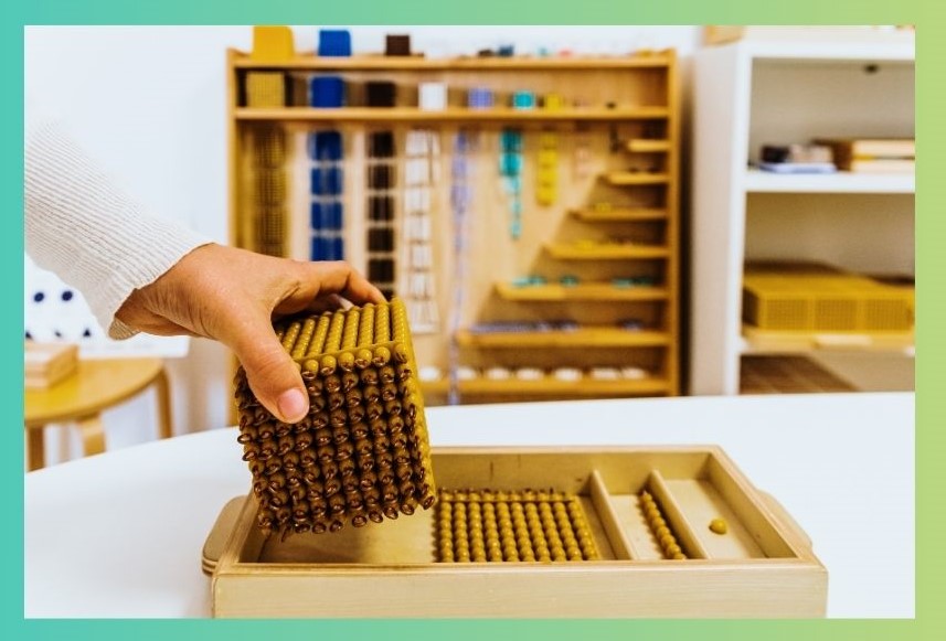 La pédagogie Montessori est basée sur la manipulation d’un matériel spécifique, ne progressant que d’une compétence à la fois.