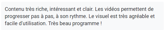 Tu as accès aux deux premiers modules pendant 7 jour, donc tu auras largement de quoi te faire une idée. Si durant cette période tu ne souhaites pas poursuivre, tu pourras demander le remboursement intégral. Après 7 jours, étant donné que la formation sera en accès total, il ne sera plus possible de te faire rembourser.